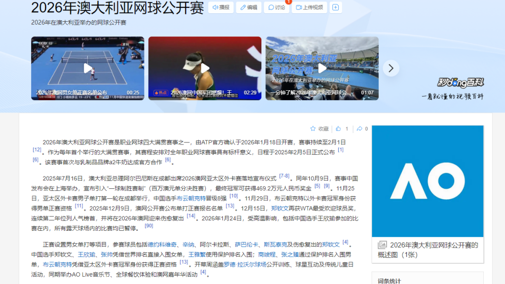 2026年澳大利亚网球公开赛正在进行中(2026.1.18-2.1)德约科维奇、辛纳、阿尔卡拉斯、斯瓦泰克、萨巴伦卡;中国选手郑钦文(伤愈复出)、张之臻、王欣瑜等德约科维奇与辛纳的同日亮相:郑钦文伤愈复出后的表现:中国多位选手参加正赛。