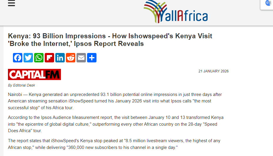 美国顶流网红iShowSpeed的非洲巡演在肯尼亚引发轰动,创造网络流量纪录。肯尼亚iShowSpeed(美国)