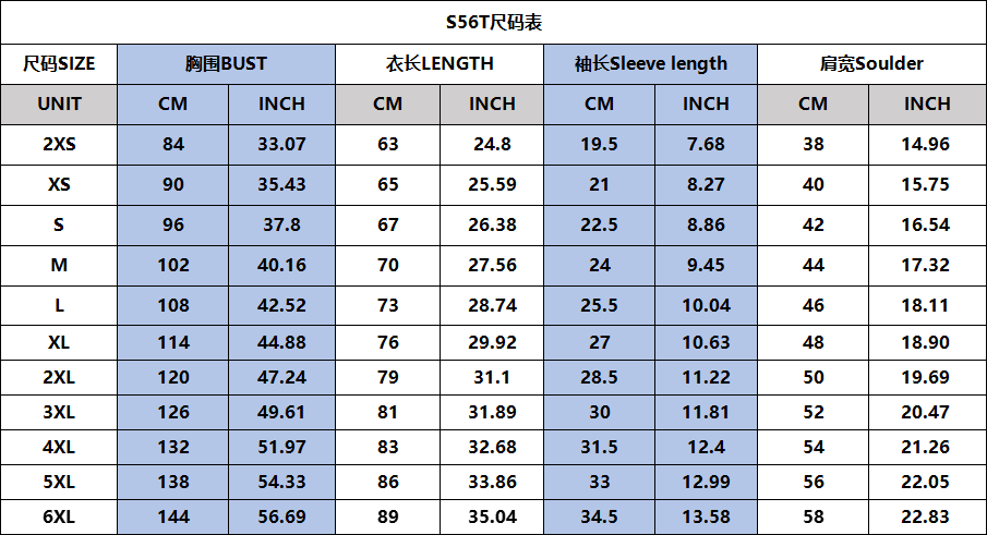 尺码:100-2XS-6XL