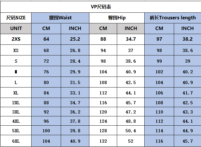 尺码:100-2XS-6XL