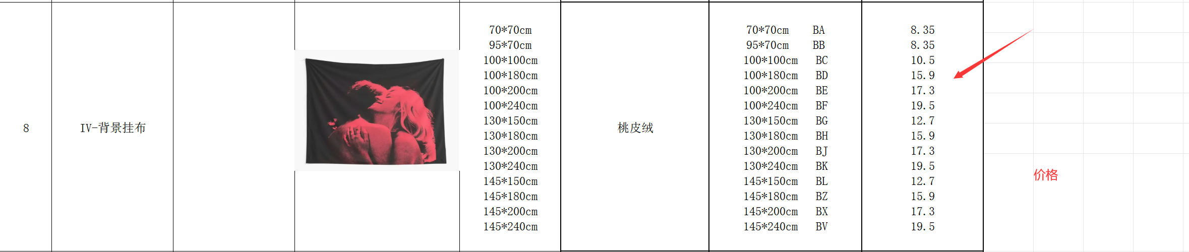 首页 / 国内家纺 / IV-背景挂布 IV-背景挂布¥0.00 IV-背景挂布 数量 加入购物车 分类: 国内家纺 描述 用户评价 (0) 描述 代码:IV 尺码范围: 适用布料:桃皮绒 评价 目前还没有评价 成为第一个“IV-背景挂布” 的评价者 取消回复您的评级 * 评价… 完美 很好 普通 还行 极差 您的评价 *名称 * 电子邮件 * 在此浏览器中保存我的显示名称、邮箱地址和网站地址,以便下次评论时使用。 相关产品 OV-枕头套 ¥9.00 加入购物车 AV-挂毯-横版 ¥10.00 加入购物车 HV-涤纶桌布 阅读更多 NV-抱枕 ¥7.50 加入购物车